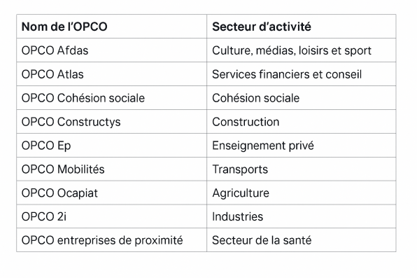 Les OPCO (Opérateurs de Compétences) sont répartis par secteurs d’activité.